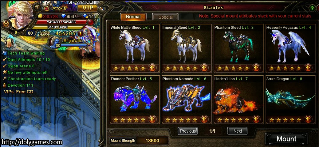 - First get all mounts as you can - it’s basic. More mounts = more power.