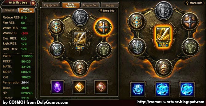 Just as for the vast majority of top players, my fate levels are long maxed out and as you can see I have over 11k spare fate stones and am longing for the field saying “Coming Soon” to vanish and to be replaced by some new statistic. However, we all know that “Coming Soon” in Wartune translates to “Maybe, if you’re lucky, we introduce something new here in 2020”. If your fate level is not maxed yet, it is a good idea to put an emphasis on Brutal Edge (rather than Resistance), since it directly affects your gold/daru income and the chance of ignoring 5000 of an opponent’s defensive stats is quite nice too (that said, it was much nicer when Brutal Edge was introduced and players only had 20k defense stats, so it is a bit of a shame that this is not a % value).Dragon Soul Core
